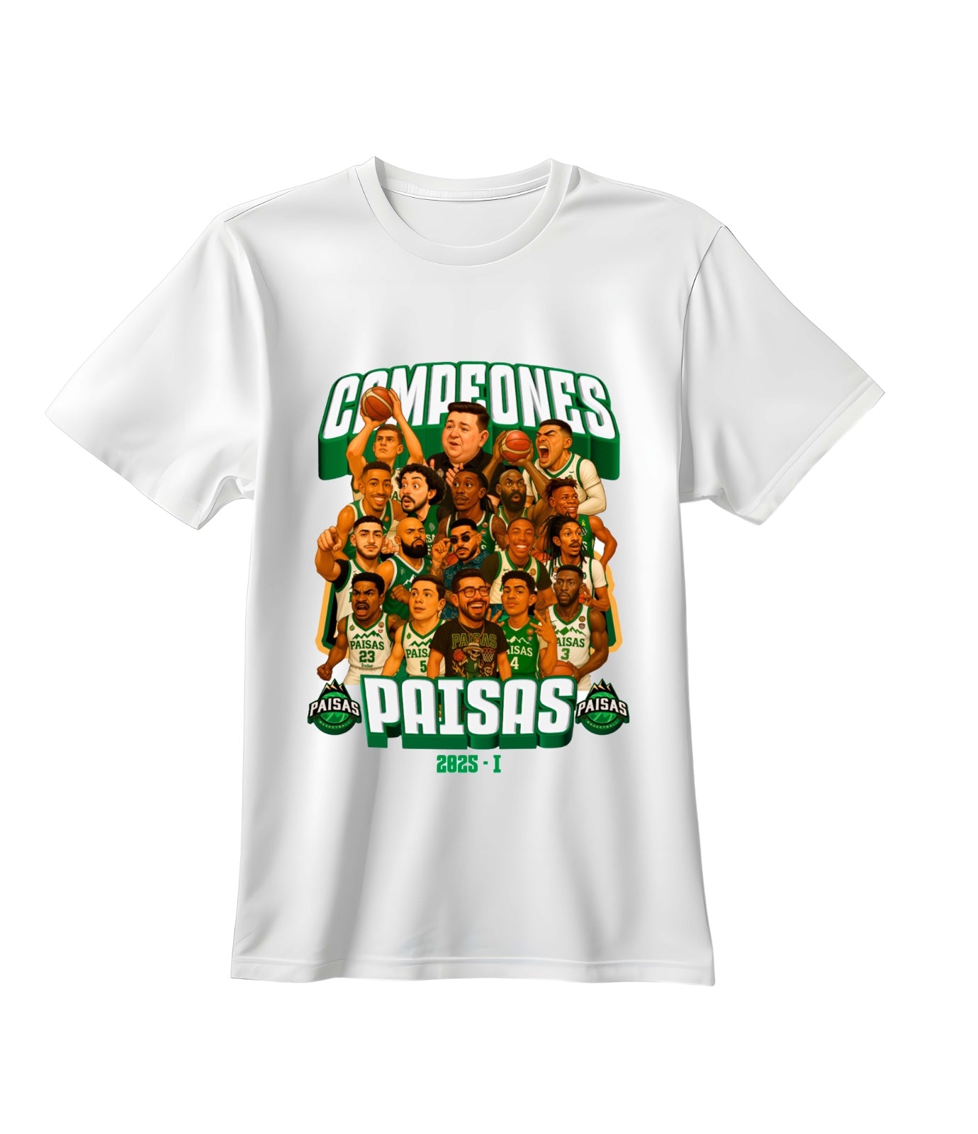 Camiseta Blanca Edición Campeons Paisas Basketball 2025 Unisex
